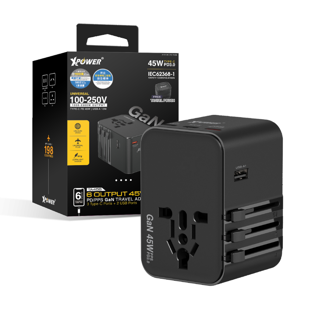15/10 XPower TA45B 6 Output 45W PD/PPS GaN Travel Charger